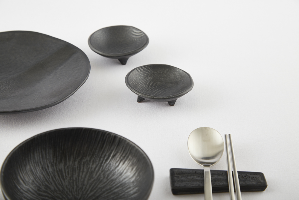 짙은 검정의 무광 도자기로 은근한 윤기가 돕니다.