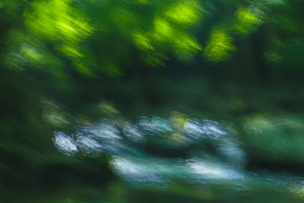 정점에 달한 숲의 생기가 사방을 가득 채운 가운데 청량히 흐르는 냇물 곁에서 평온한 고요를 느낍니다.