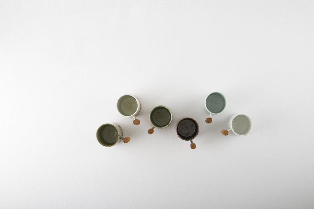 면분할한 도자기와 나무손잡이의 조화가 독특한 분위기를 자아냅니다.