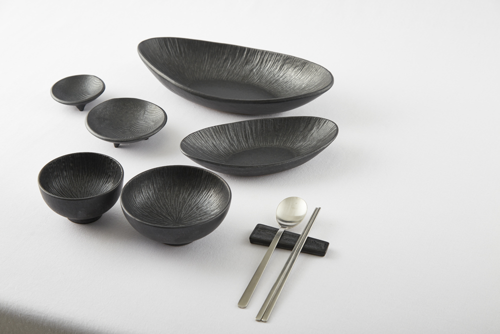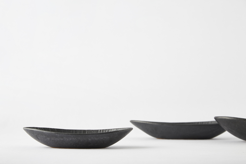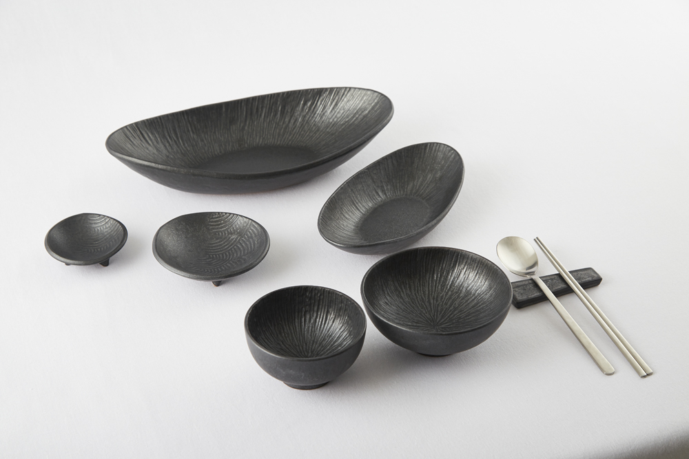 짙은 검정의 무광 도자기로 은근한 윤기가 돕니다.