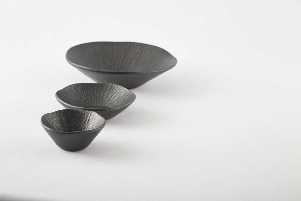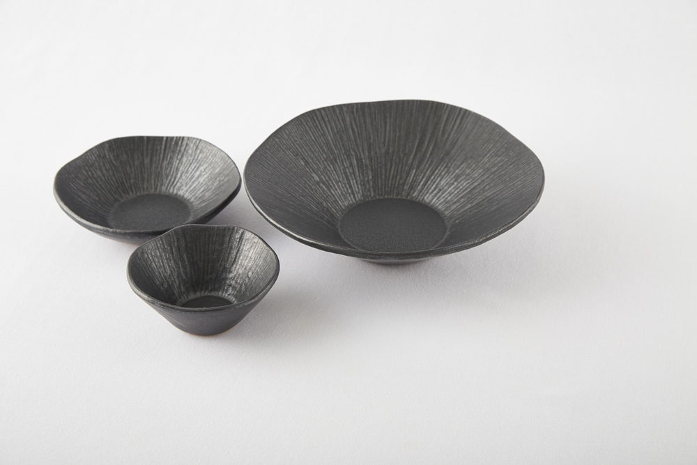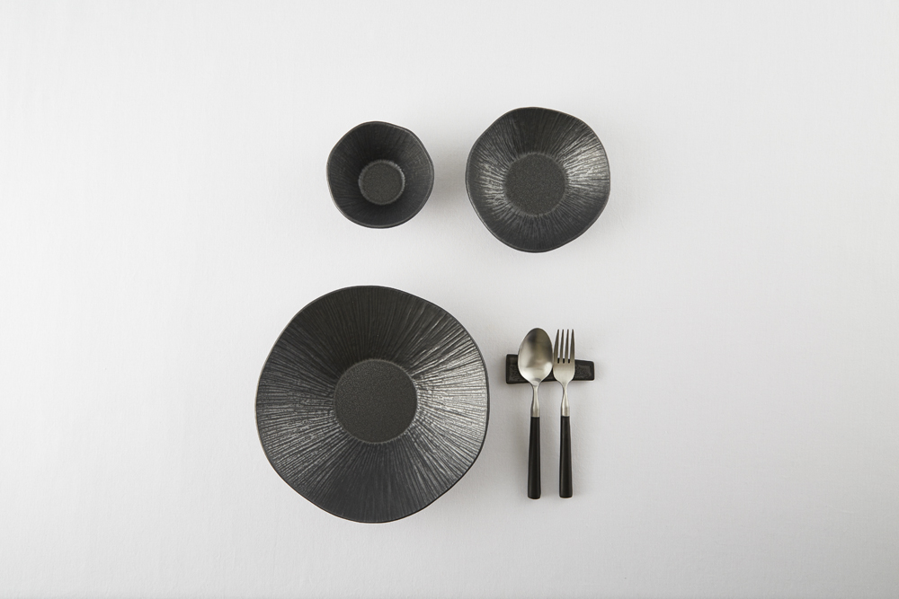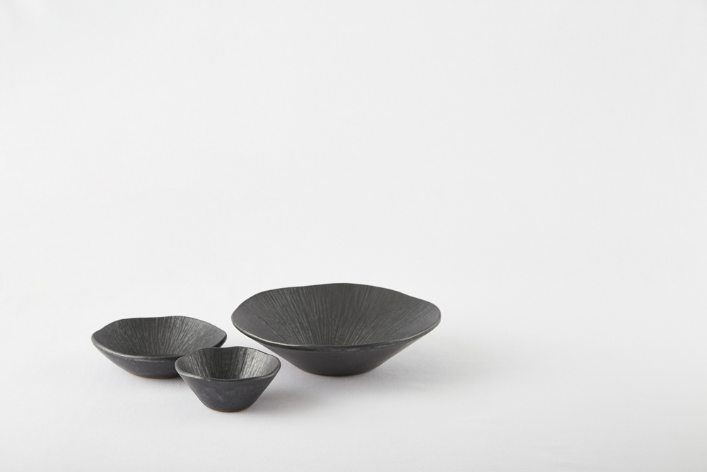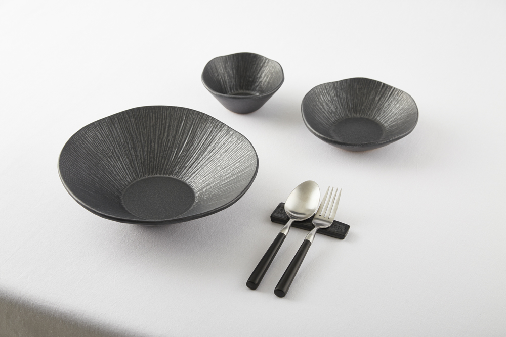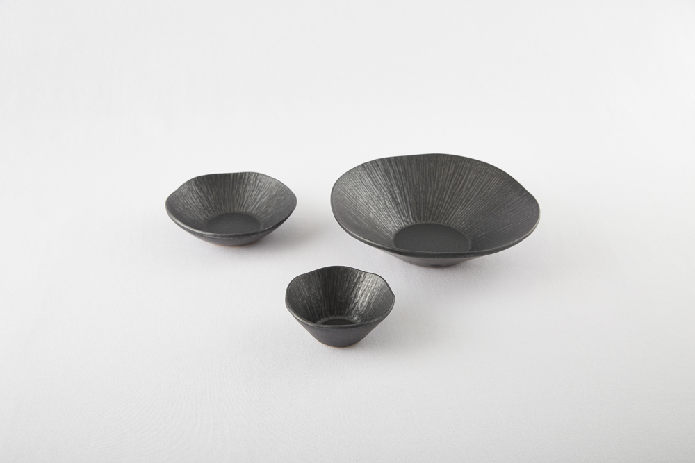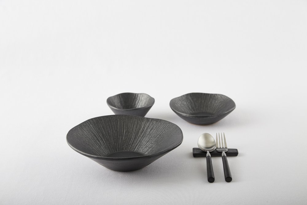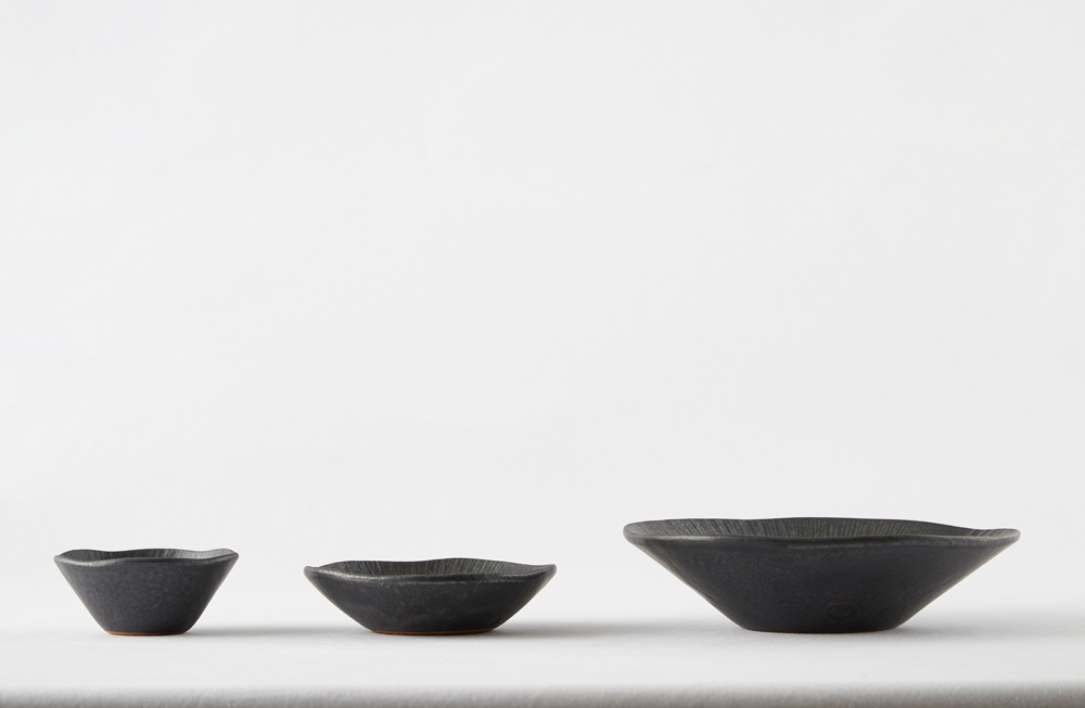 짙은 검정의 무광 도자기로 은근한 윤기가 돕니다.