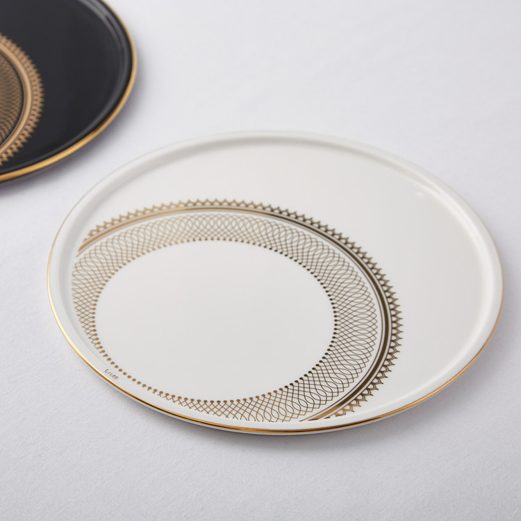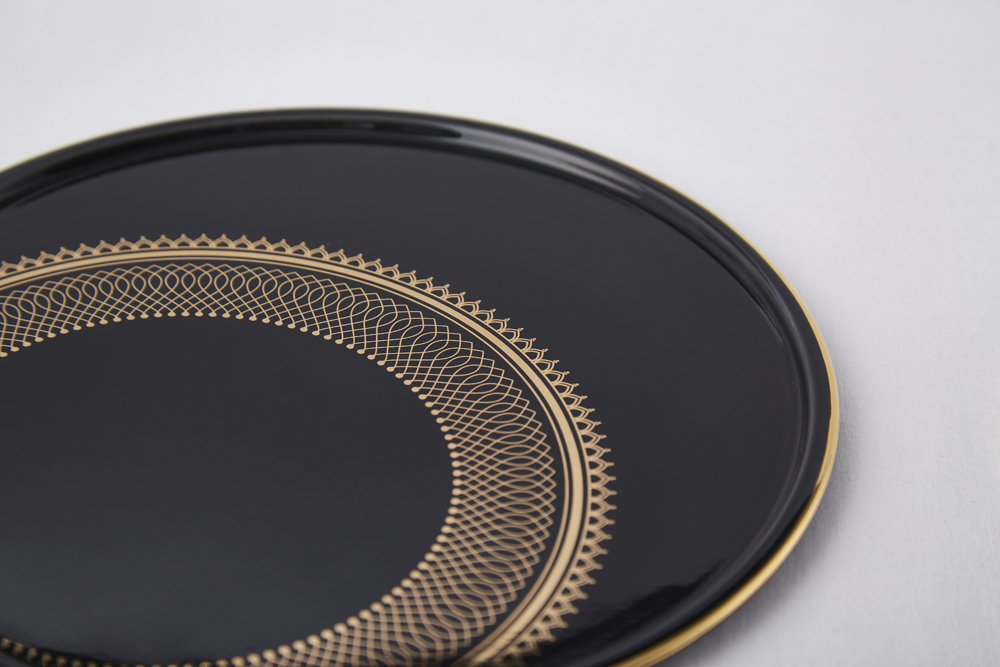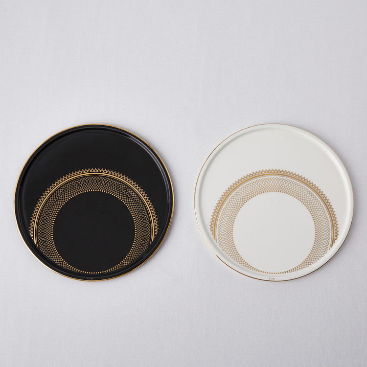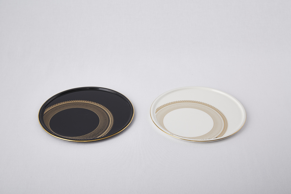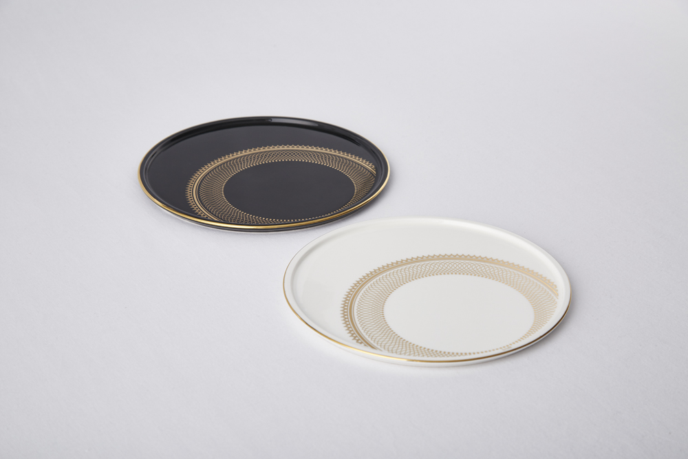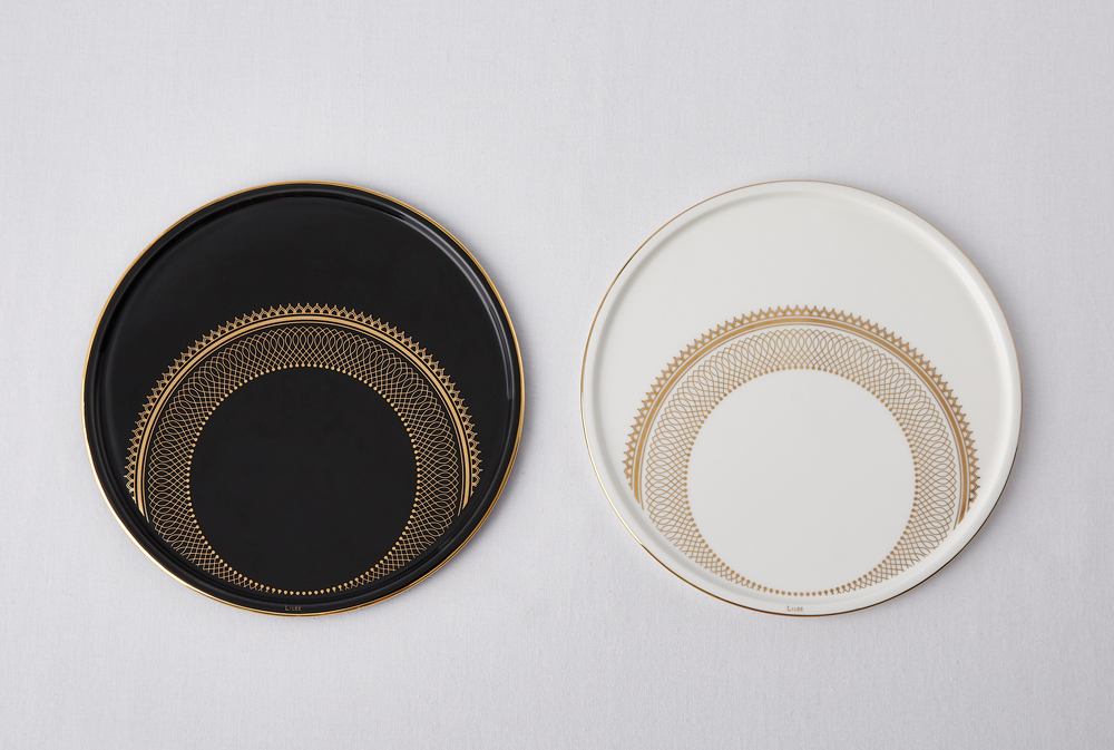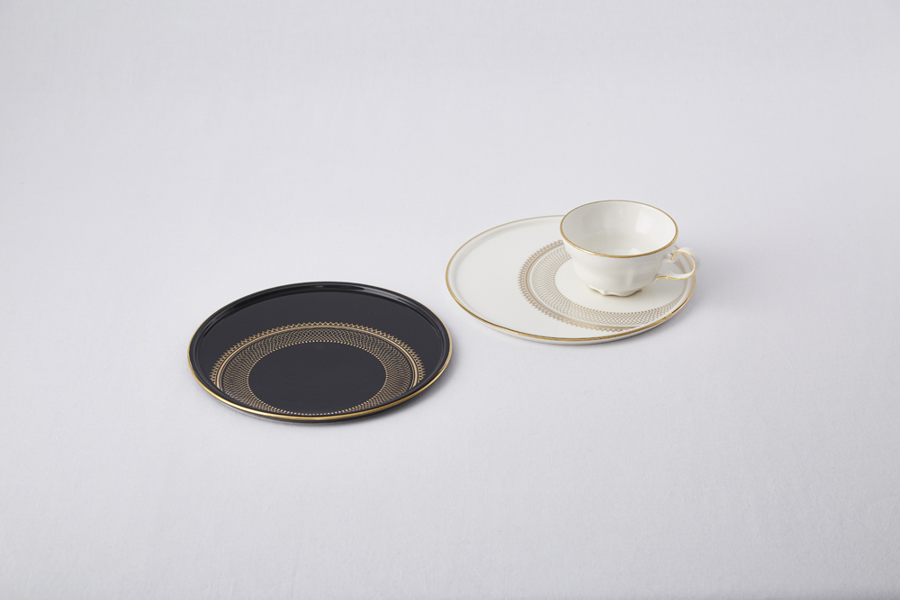 깔끔한 도자기의 색상 위로 빛나는 금 장식이 시선을 끕니다.