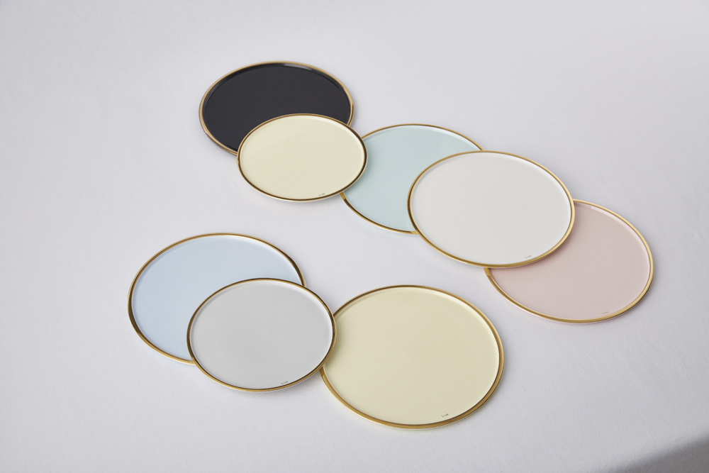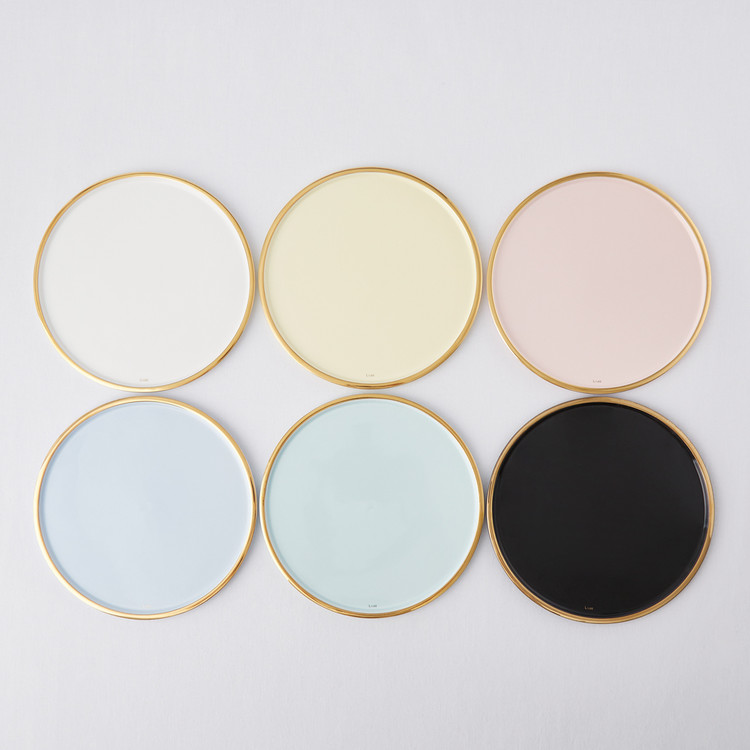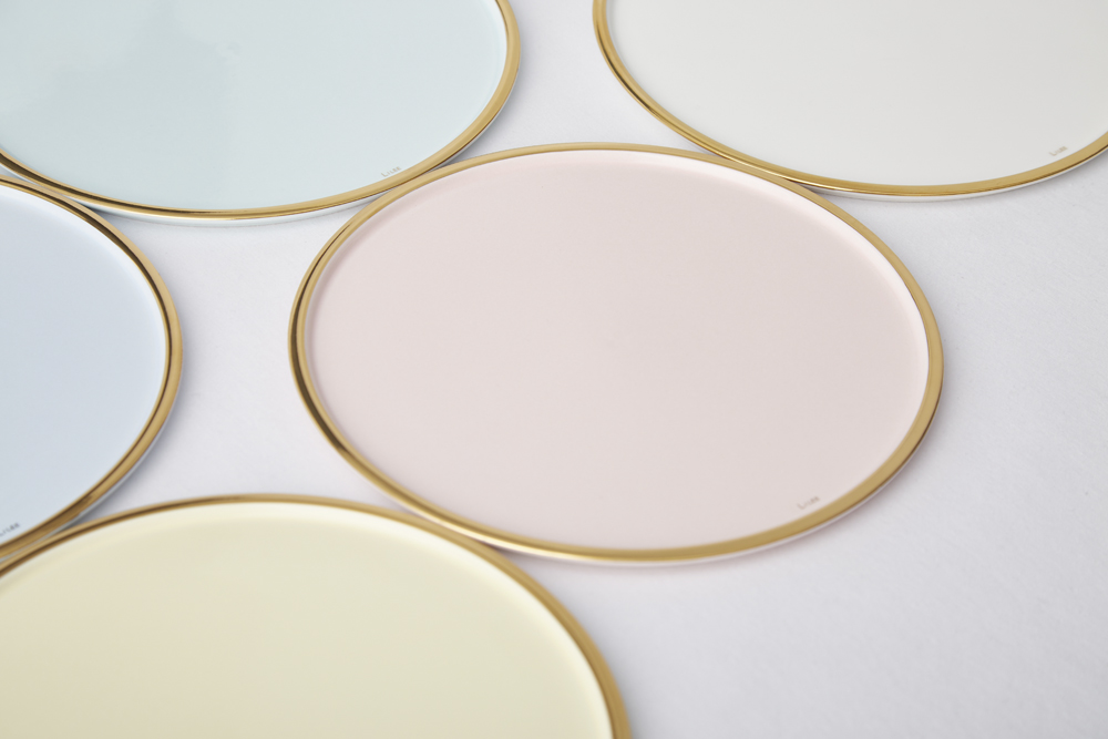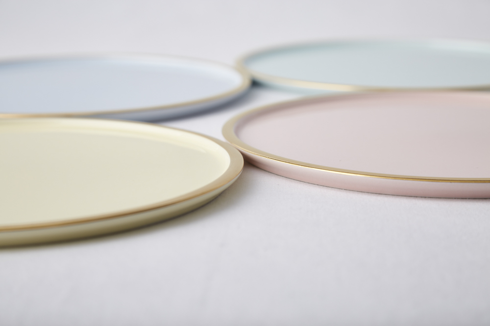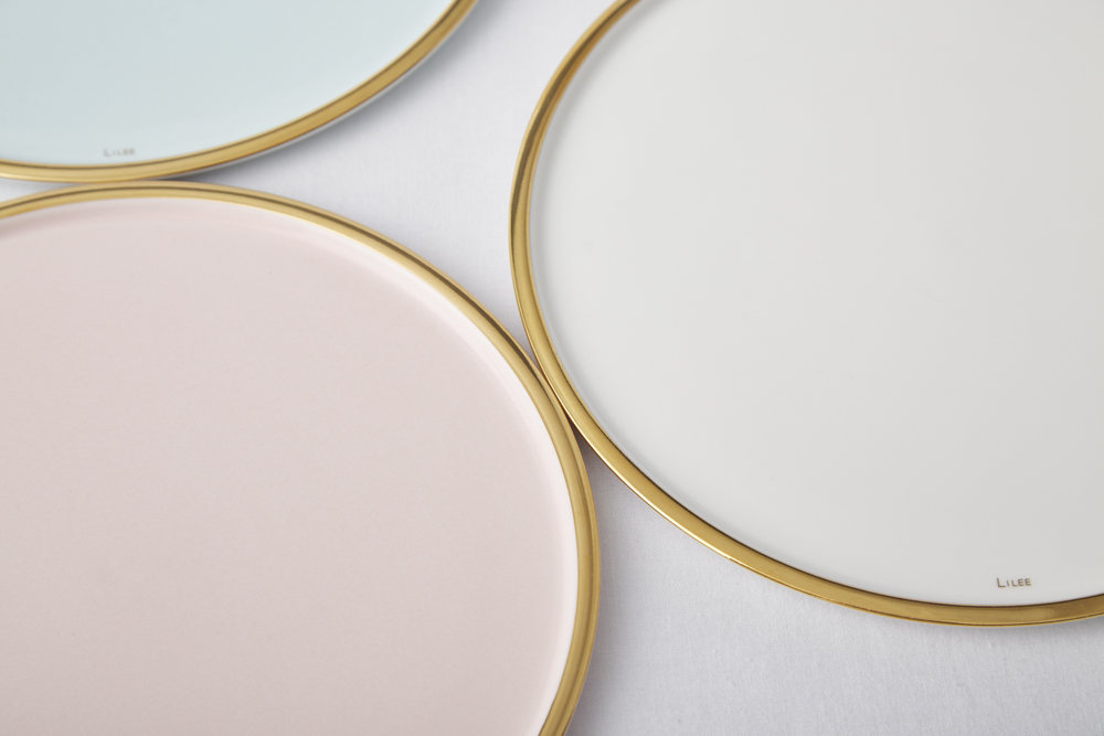 파스텔 색감의 도자기를 반짝이는 골드림으로 둘렀습니다.