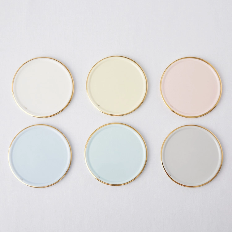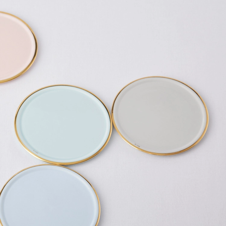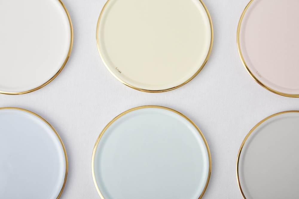 파스텔 색감의 도자기를 반짝이는 골드림으로 둘렀습니다.
