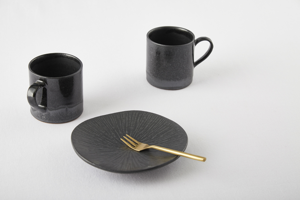 짙은 검정의 무광 도자기로 은근한 윤기가 돕니다.