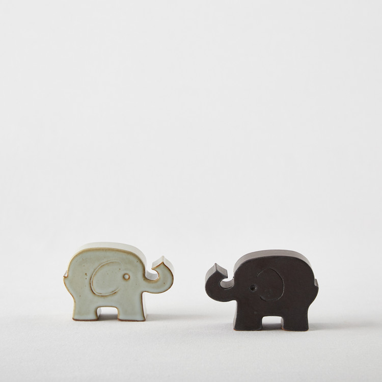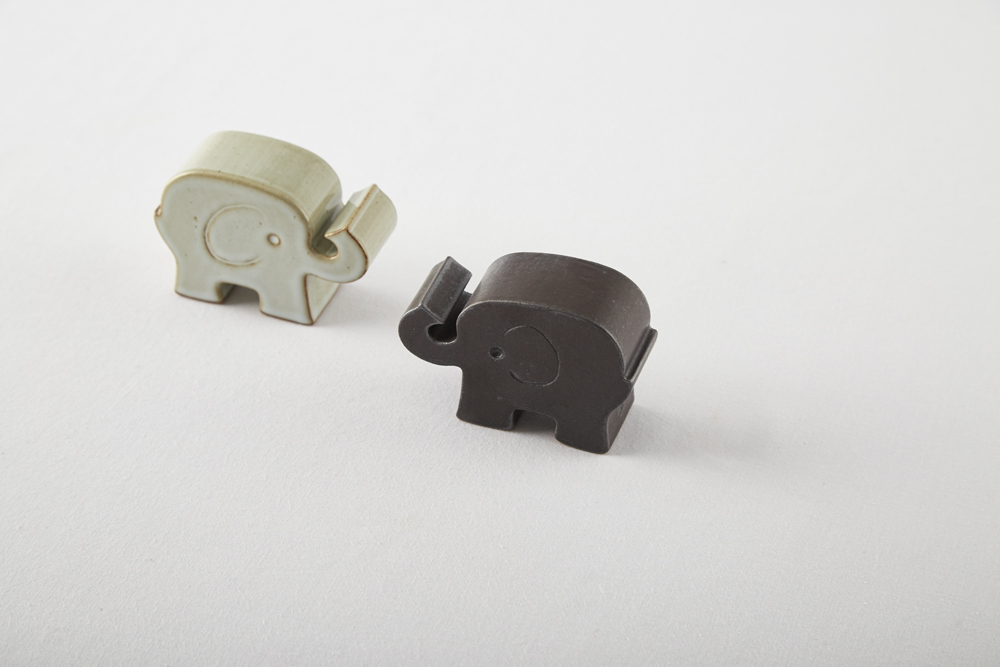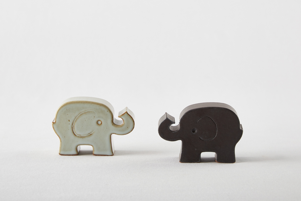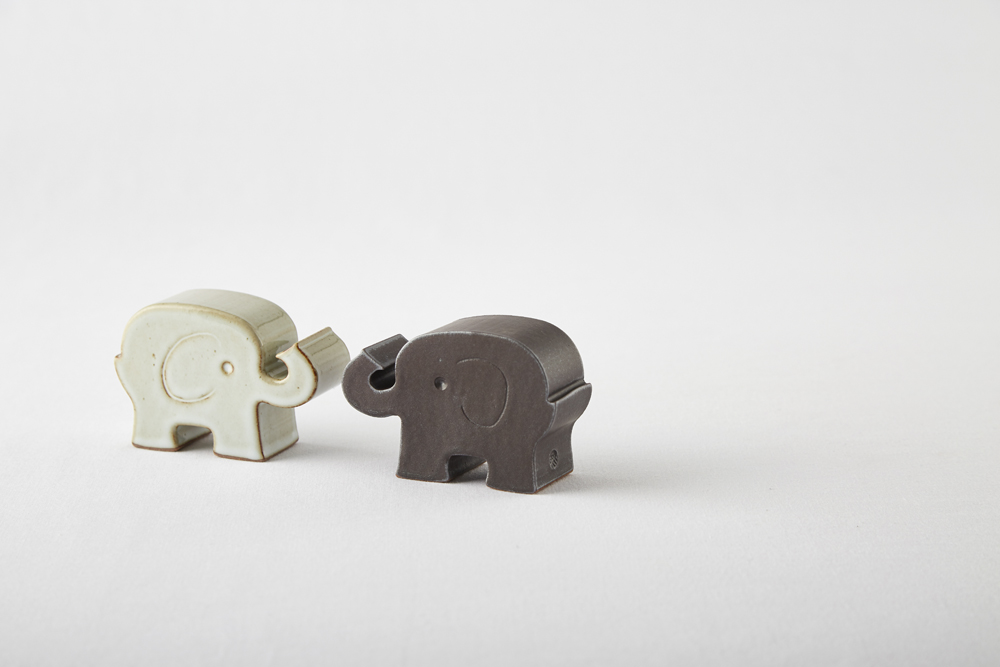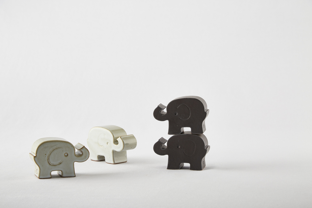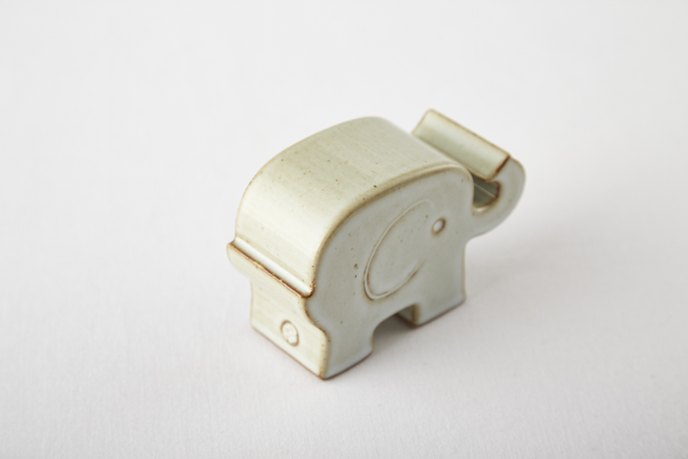 흰 화장토를 덧입힌 밝은 회색의 유광 코끼리.