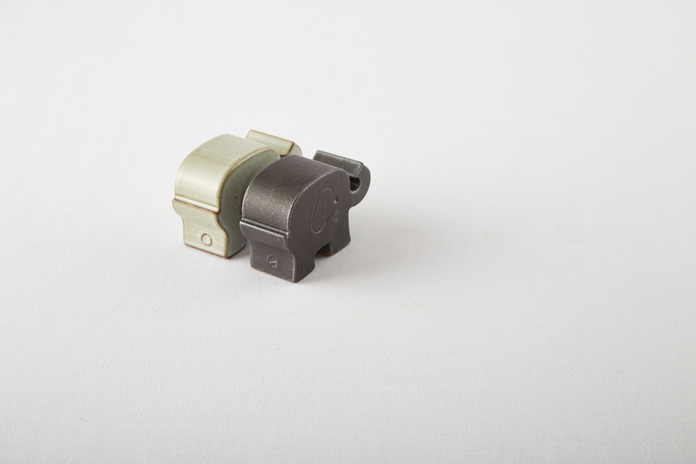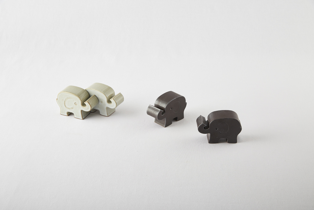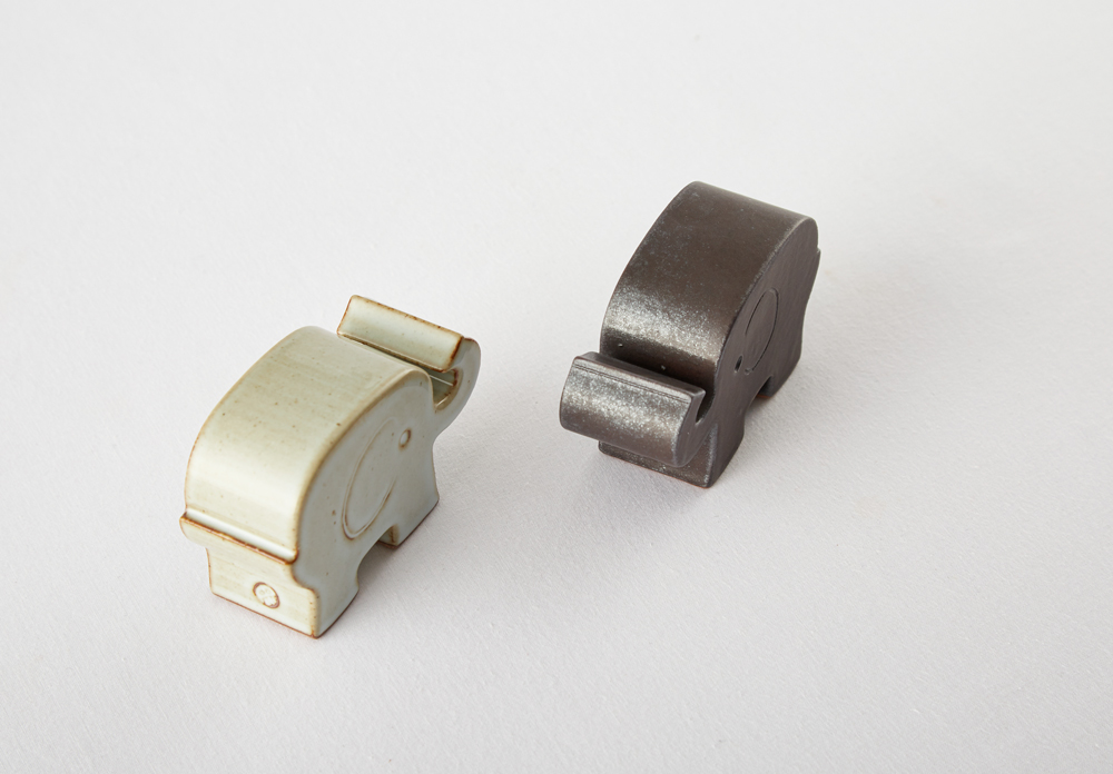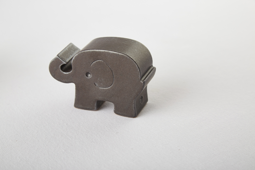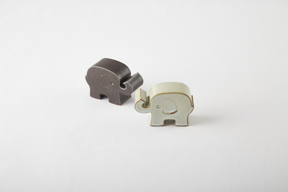흰 화장토를 덧입힌 밝은 회색의 유광 코끼리.