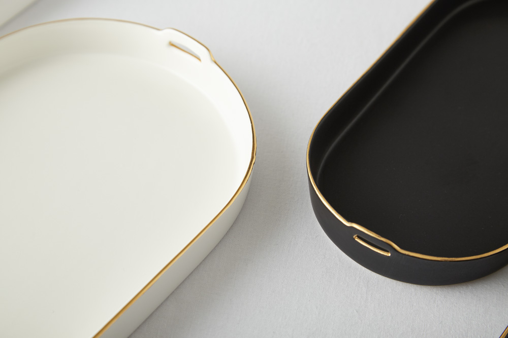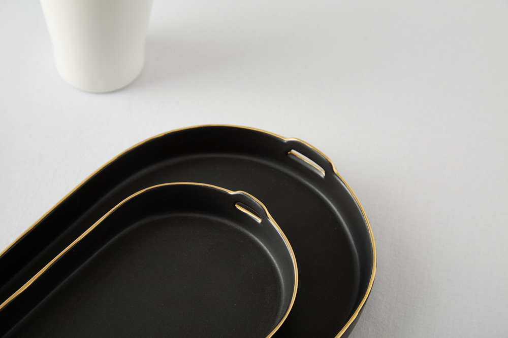 플레이트는 간결한 디자인에 살짝 솟은 손잡이로 비정형의 요소를 가미합니다.