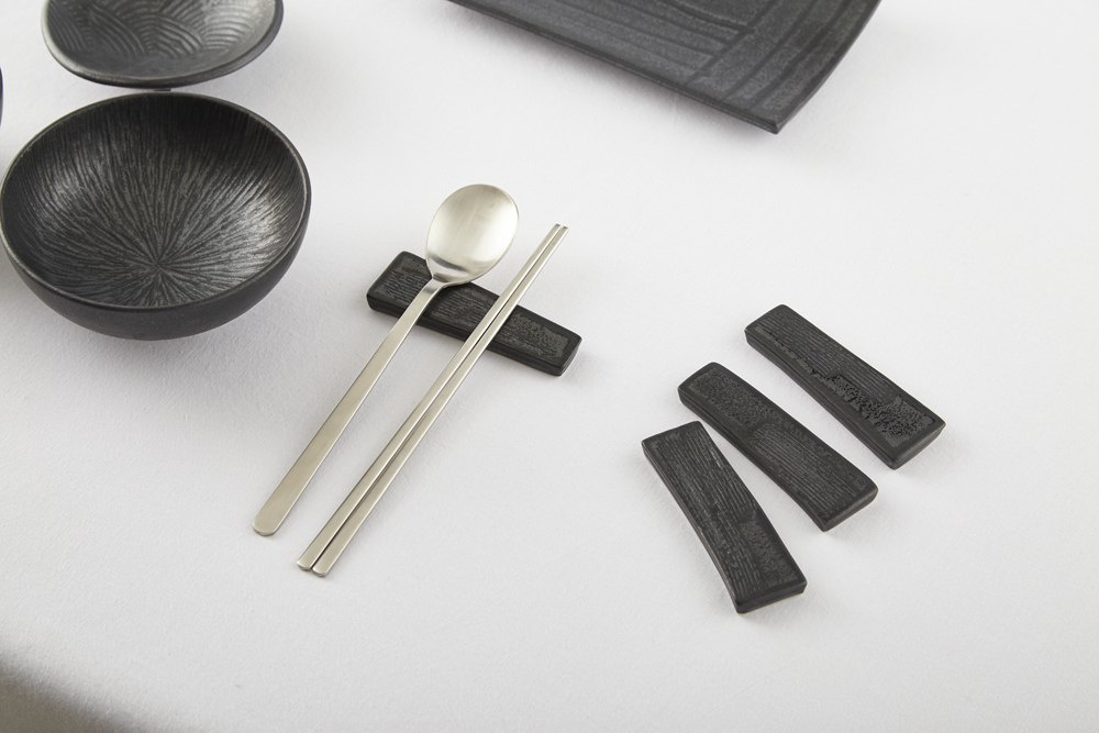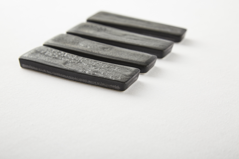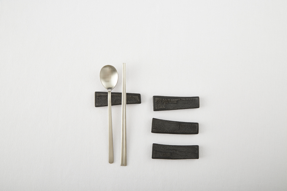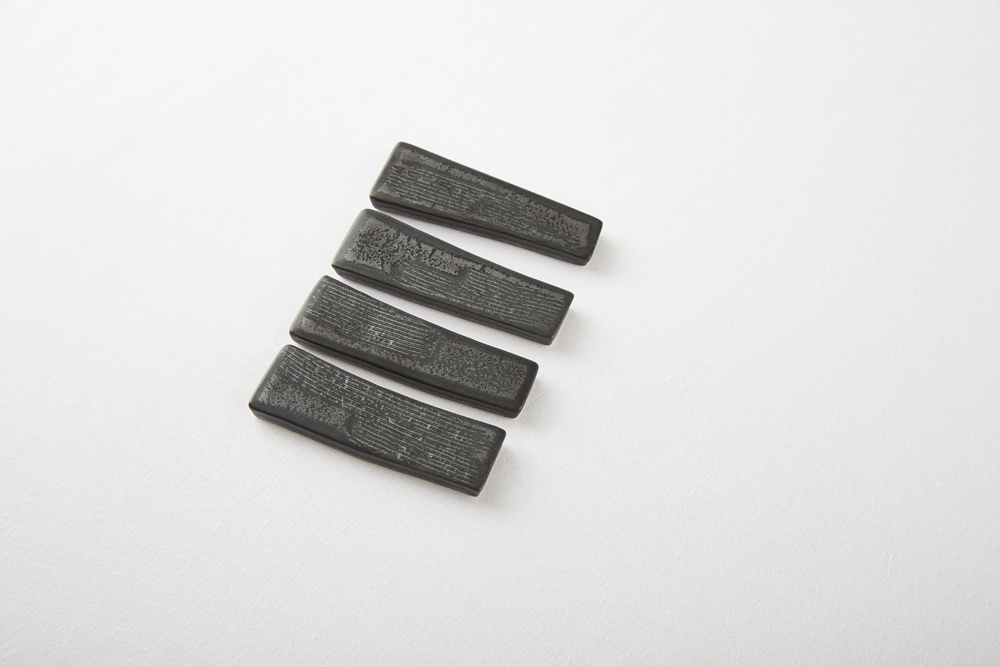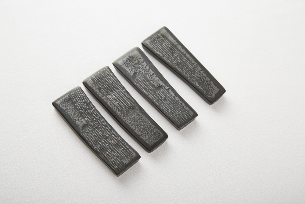 길쭉한 사각의 형태와 줄무늬 조각을 제각기 비정형으로 빚습니다.