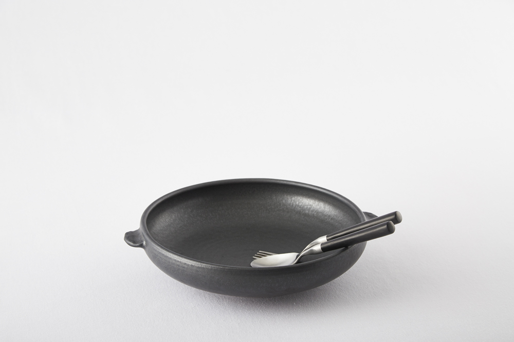 짙은 검정의 무광 도자기로 은근한 윤기가 돕니다.