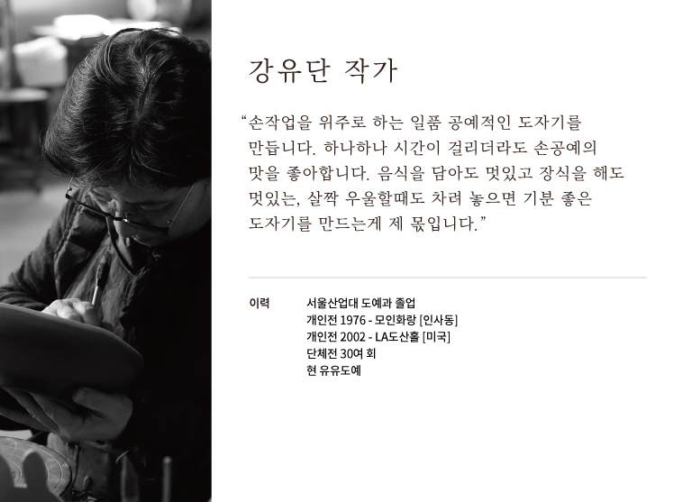 손으로 빚는 도자기의 분위기가 강하게 느껴짐 또한 강유단 작가의 특징입니다.