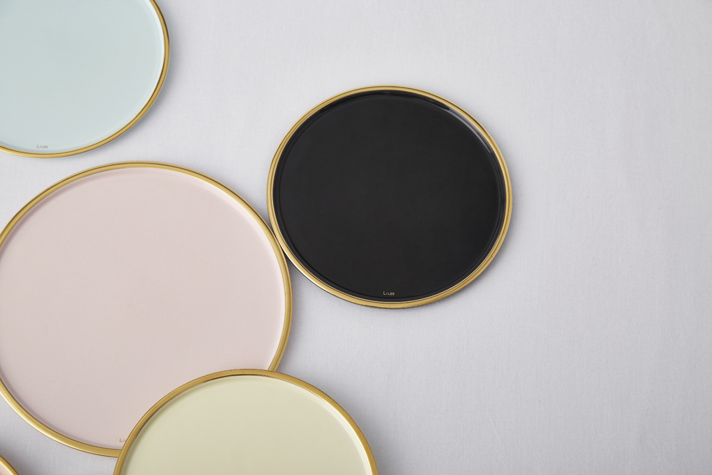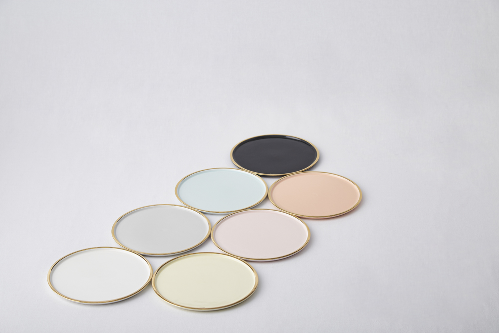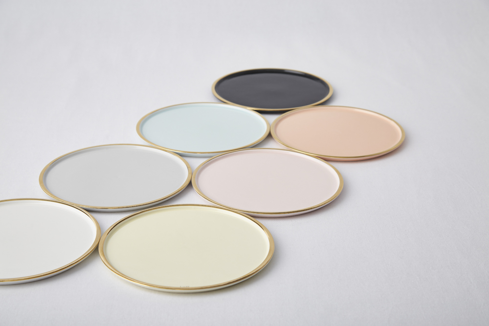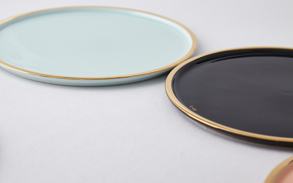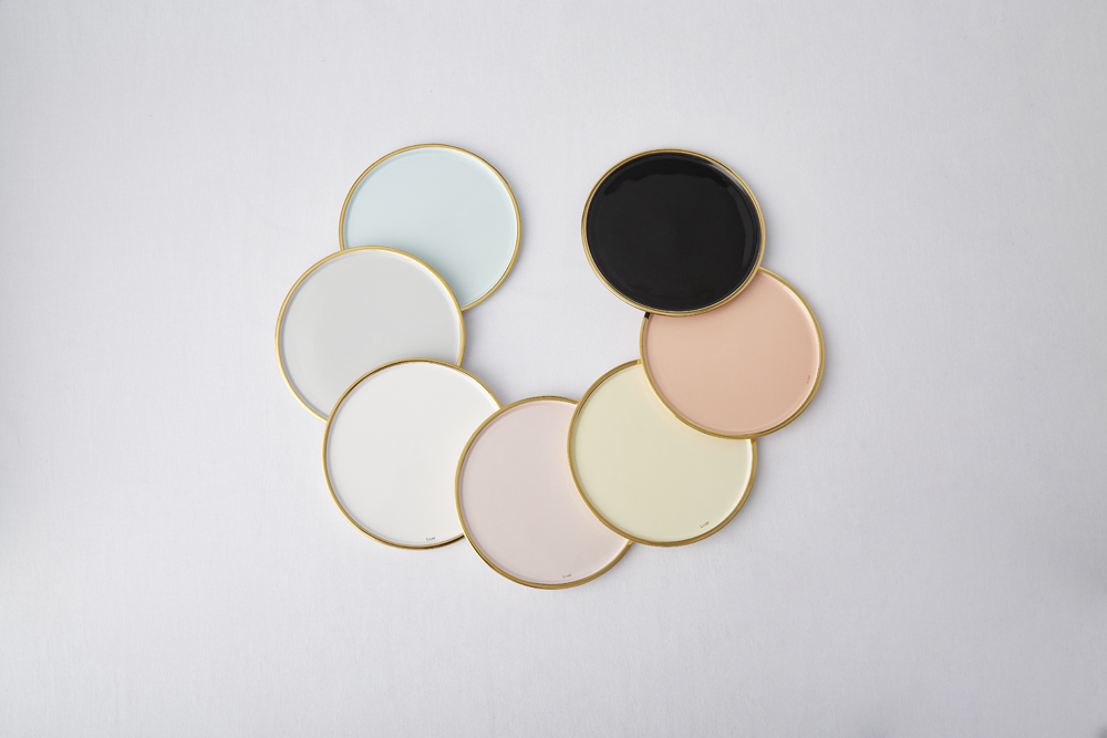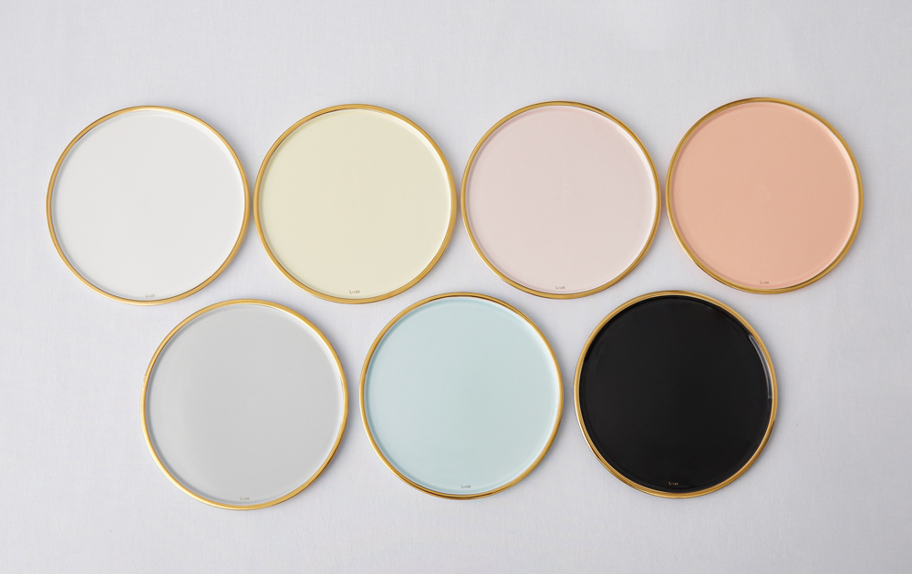 파스텔 색감의 도자기를 반짝이는 골드림으로 둘렀습니다.