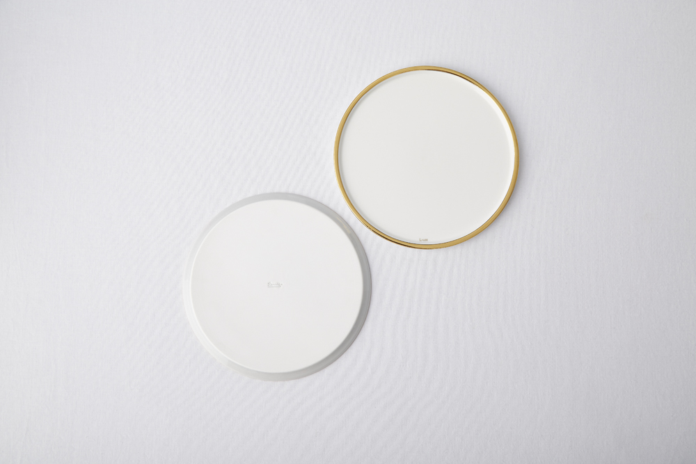 깔끔한 도자기의 색상 위로 빛나는 금 장식이 시선을 끕니다.