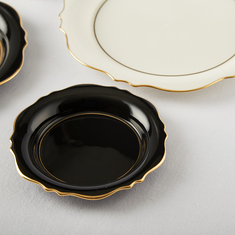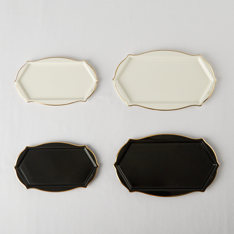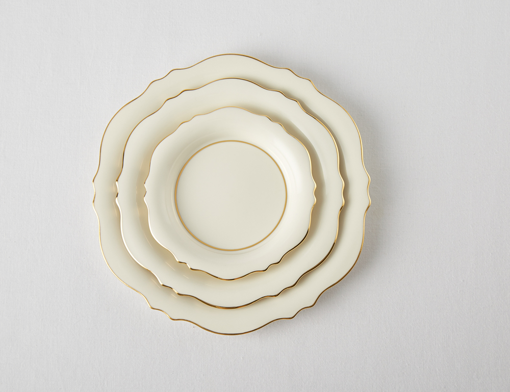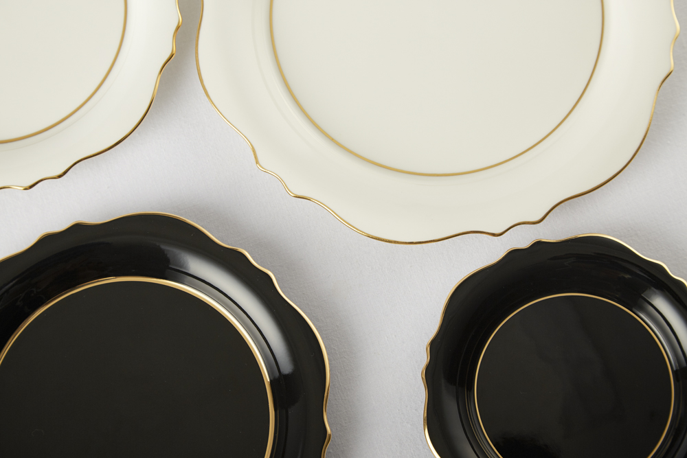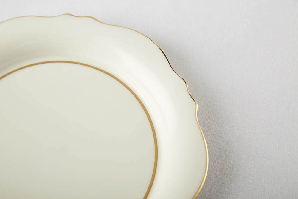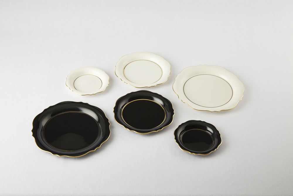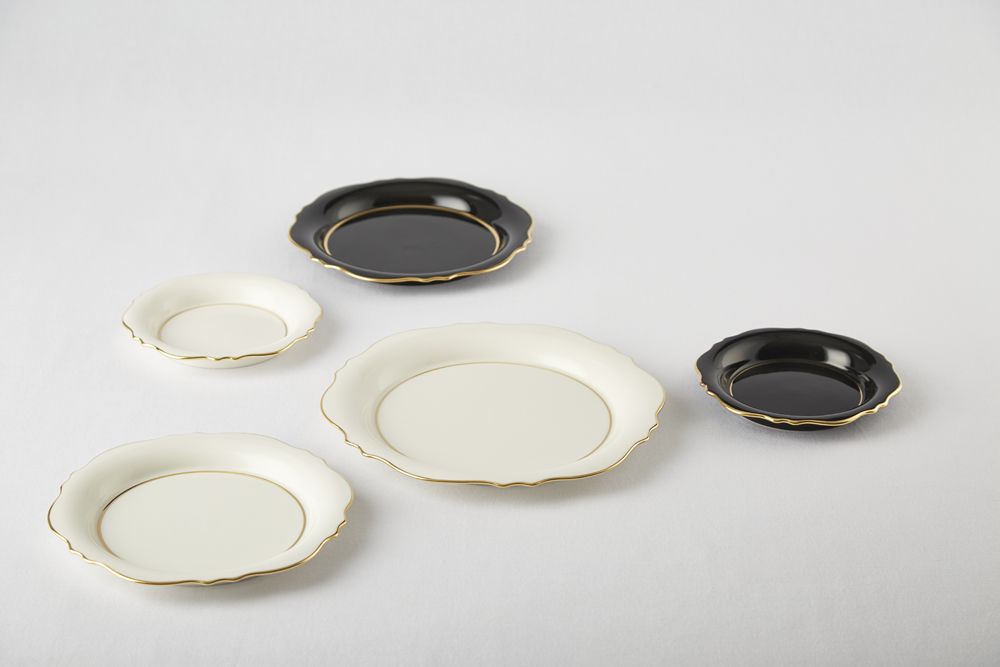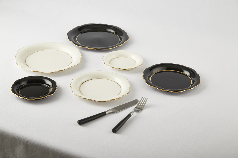 깔끔한 도자기의 색상 위로 빛나는 금 장식이 시선을 끕니다.