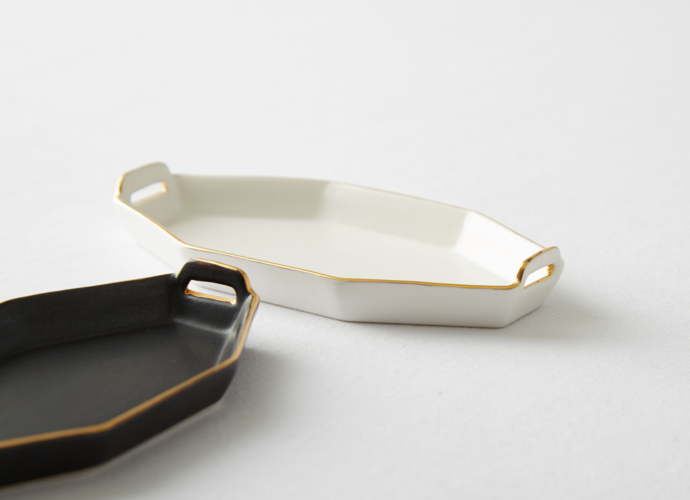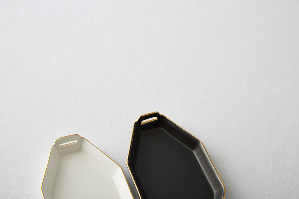 대칭을 이루는 팔각의 아담한 플레이트로 소량의 디저트, 에스프레소잔과 어울립니다.
