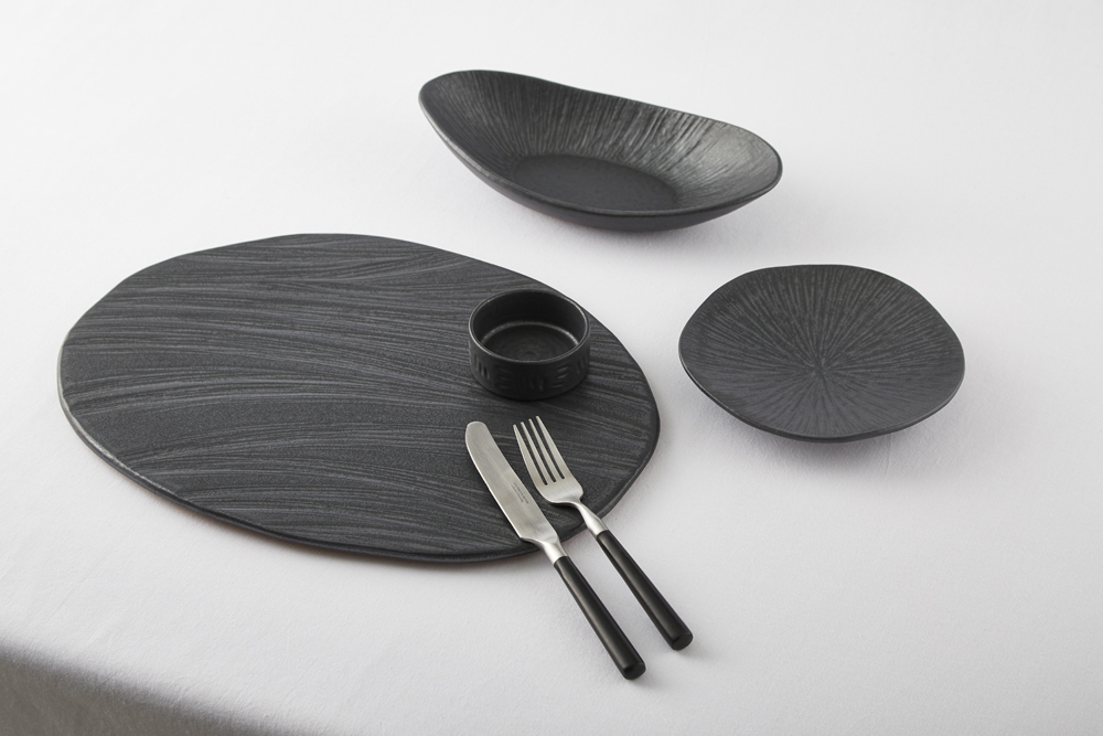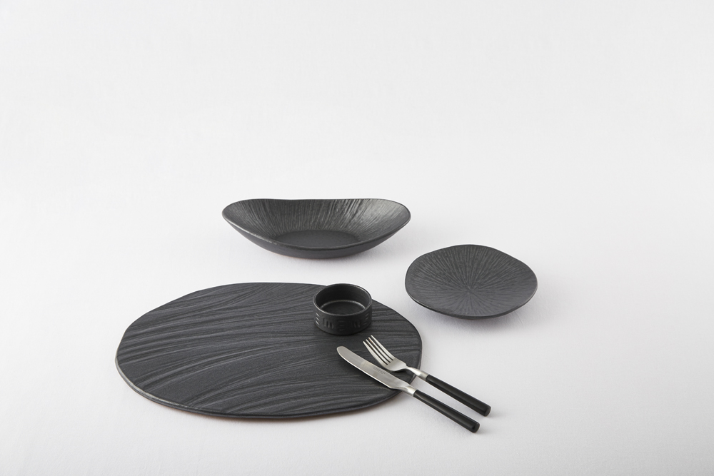 짙은 검정의 무광 도자기로 은근한 윤기가 돕니다.