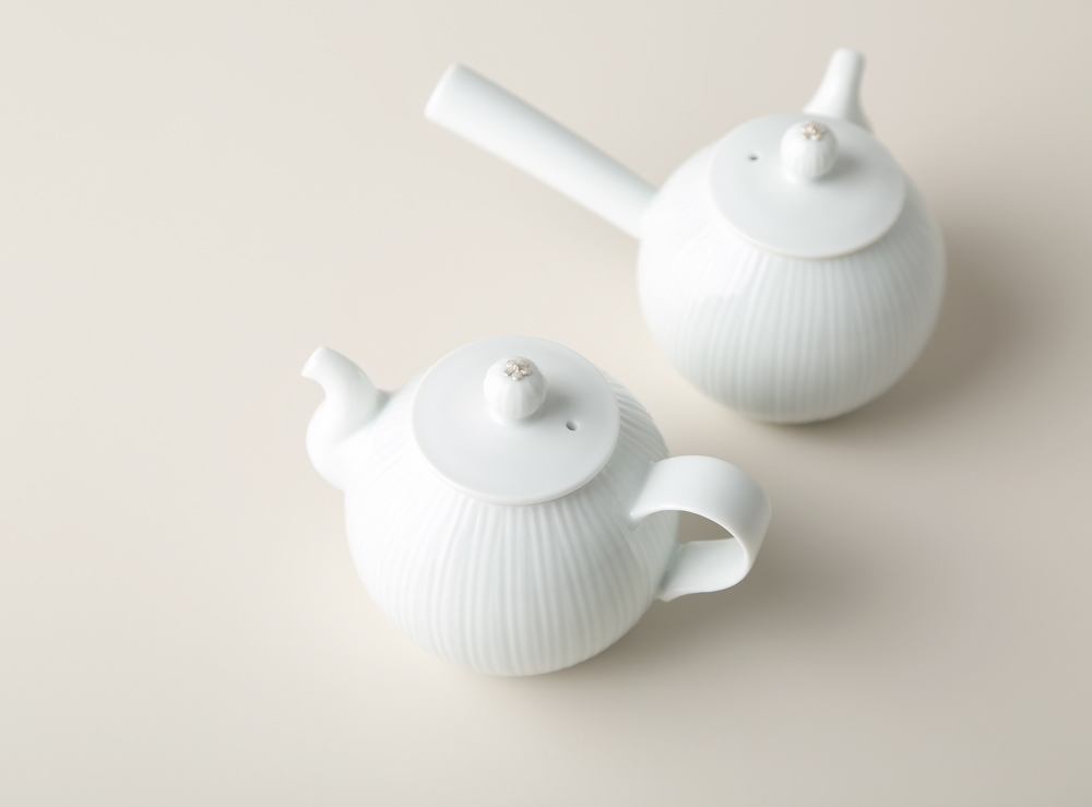 정갈한 형태와 다기의 세심한 구조, 줄무늬와 배꽃 등 장식이 어우러집니다.