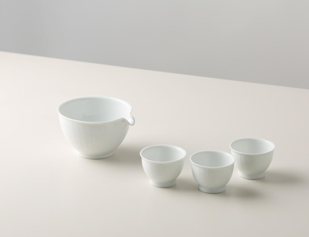 고온에서 구운 유광 백자로 깨끗한 흰 빛깔 안에 은은한 푸른빛이 감돕니다.