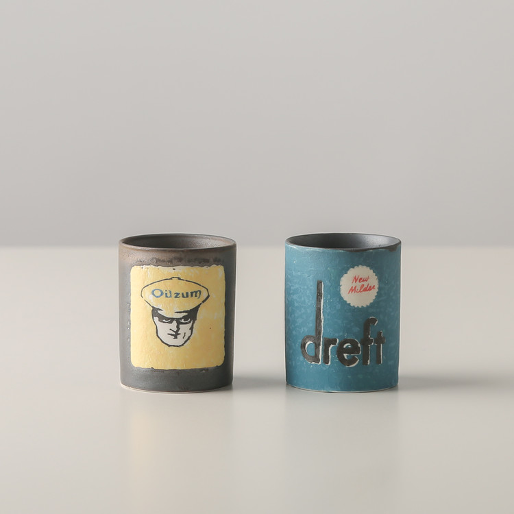 금속 위에 페인트로 그림을 그린 것처럼 독특한 질감의 도자기 술잔입니다.
