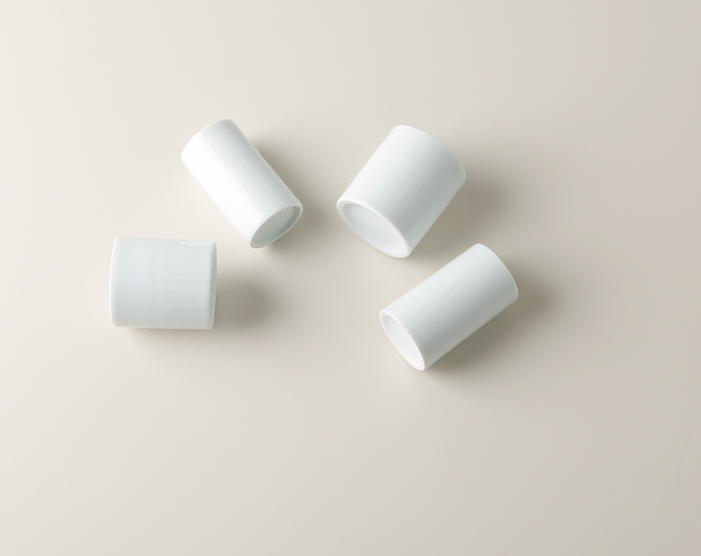 고온에서 구운 유광 백자로 깨끗한 흰 빛깔 안에 은은한 푸른빛이 감돕니다.