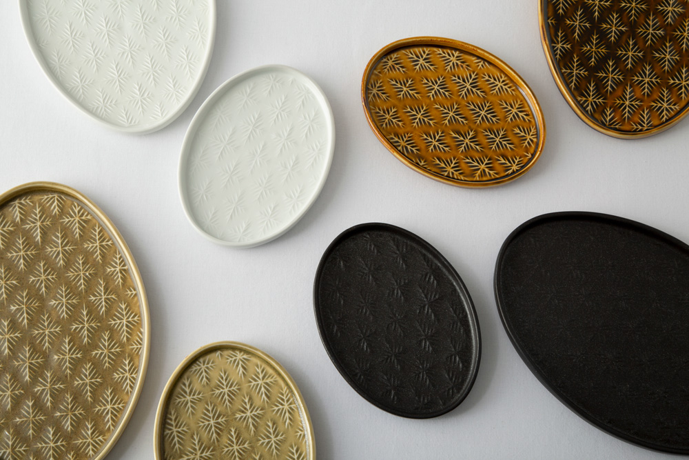 장훈성 눈꽃 타원접시 소 흑유 10개
