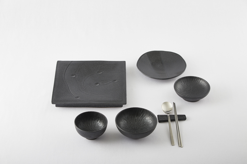 짙은 검정의 무광 도자기로 은근한 윤기가 돕니다.